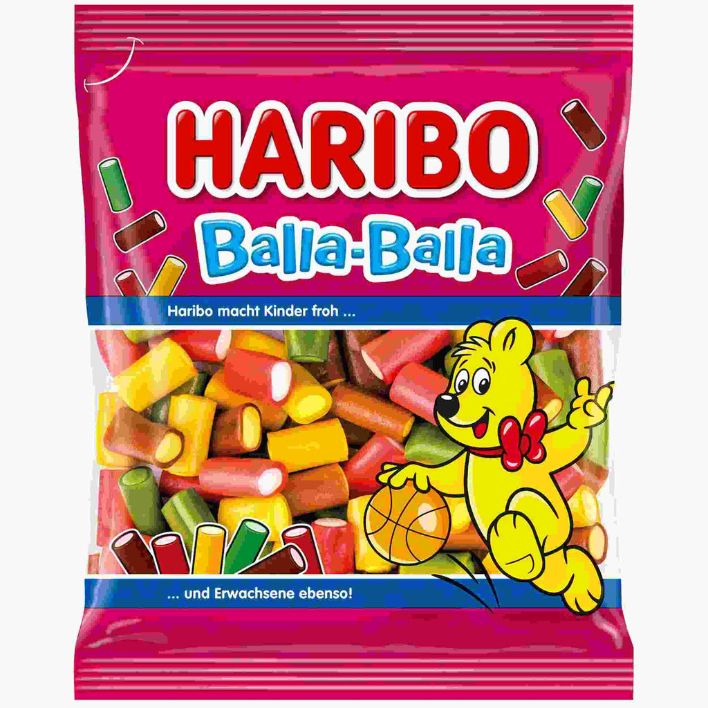 Haribo Balla Balla sind leckere Konfektstücke mit einer Ummantelung von buntem Fruchtgummi. Das weiche Konfekt schmeckt aromatisch und fruchtig und ist ein Muss für jeden Konfekt-Fan. Die Stückchen sind übrigens ca. 2,5cm groß und ein echter Augenschmaus.