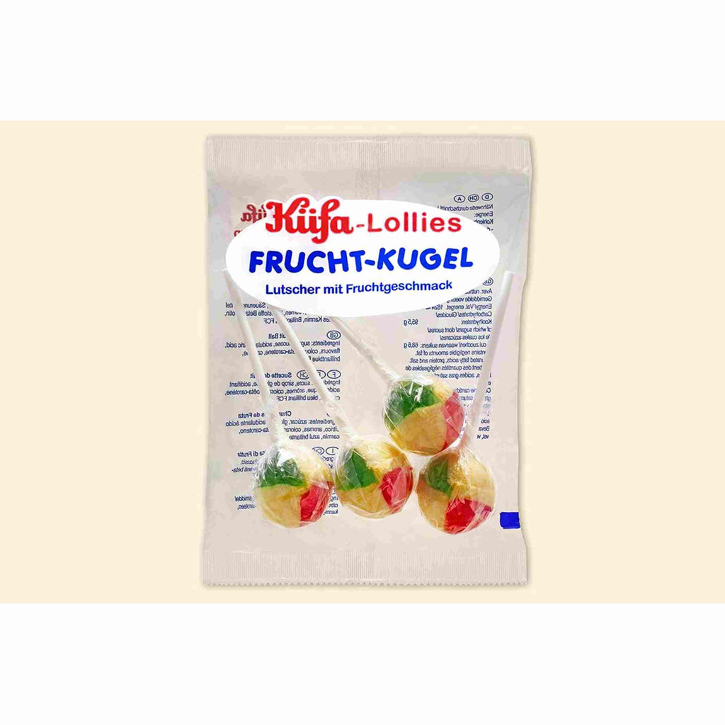 Gleich mit drei Farben in einem Lolly kommt unser Lutscher Frucht-Kugel daher. Die bunten Lollies in den Ampel-Farben gelb, rot und grün sind herrlich zitronig und eine Erfrischung besonders im Sommer.