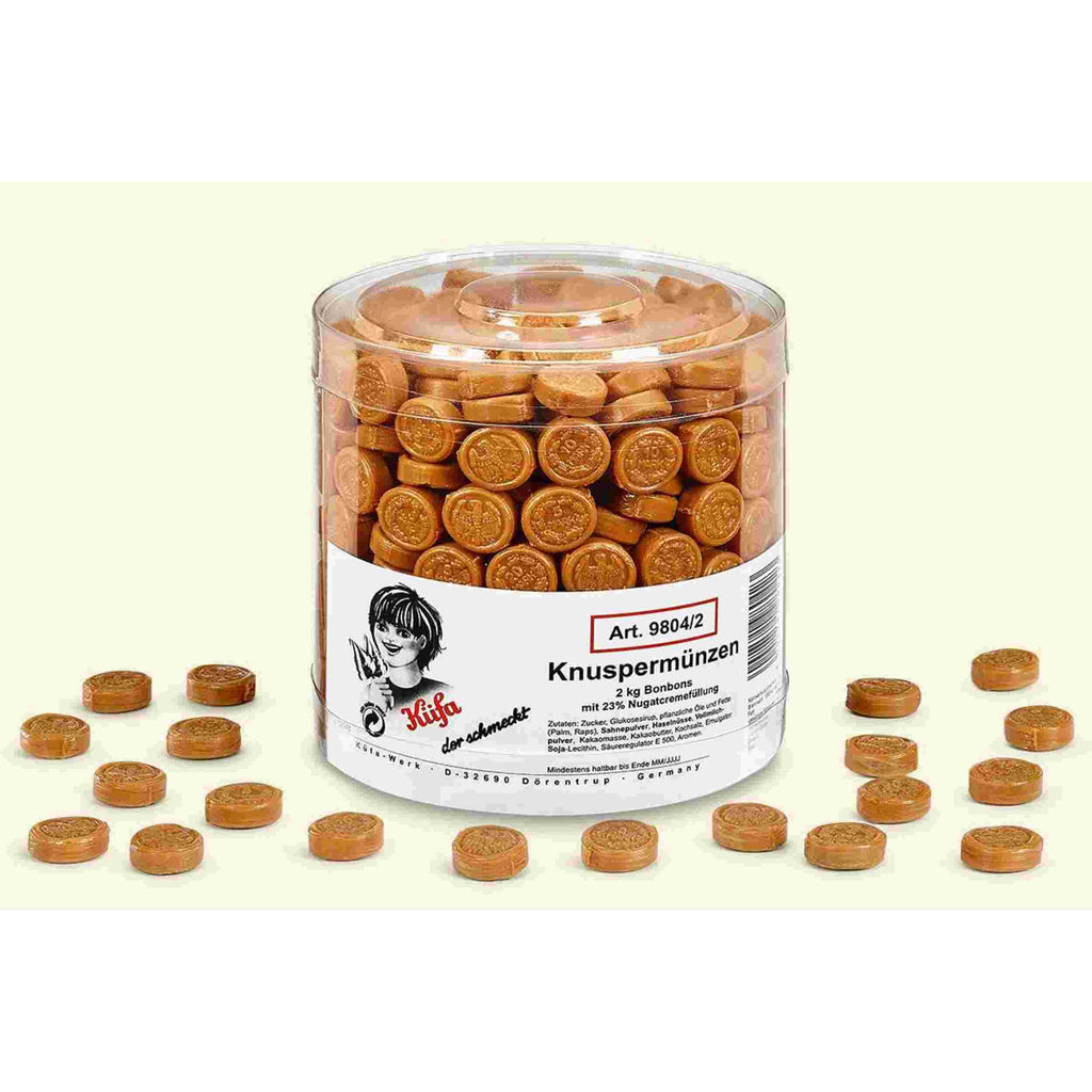 Genießer werden bei unseren Knuspermünzen mit Haselnuss-Nougatcreme-Füllung (manche nennen sie auch Milchmünzen) mit einem wundervollen, leckeren Bonbon mit knuspriger Füllung belohnt.