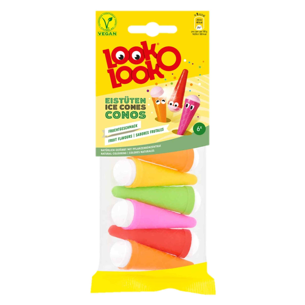 Mit Look-O-Look genießt man Eiscreme nicht nur im Sommer: Diese leckeren Eistüten können auch im Winter vernascht werden! Die kleinen, bunten Tüten im Waffel-Look mit ihrem süßen „Eiscreme-Deckel“ aus Traubenzucker enthalten zusätzlich eine Überraschung – nämlich eine prickelnde Füllung aus Brausepulver. Auch sind sie komplett vegan und enthalten nur natürliche Farbstoffe. Ein Riesenspaß und tolles Leckvergnügen – zum Verschenken oder Selbstvernaschen, das ganze Jahr über!