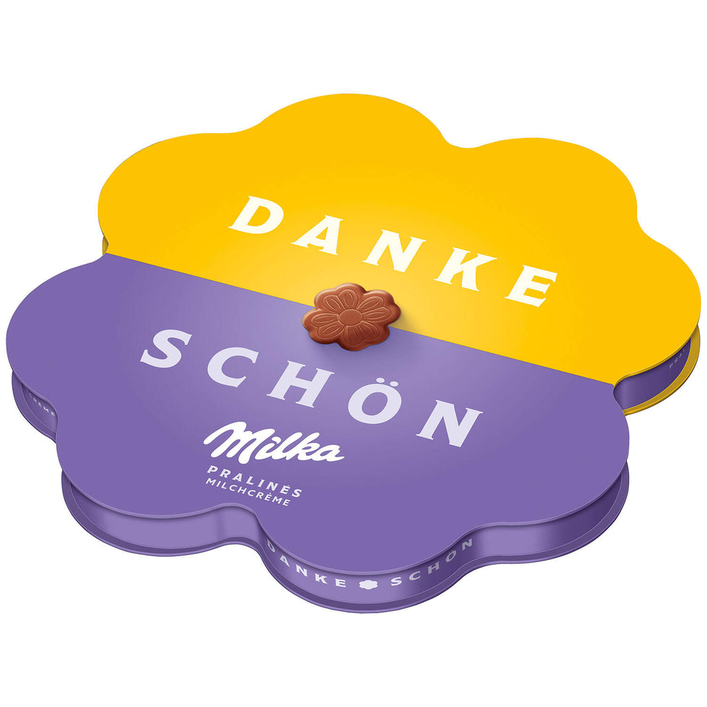 Das blumige Geschenk. Denn Die Milka 'Dankeschön' Pralinés Milchcrème sind geformt wie frühlingshafte Blüten. Die kleinen Köstlichkeiten aus Alpenmilch-Schokolade sind gefüllt mit Milchcrème und drücken auf zartschmelzende Weise Ihr Dankeschön aus. Schenken Sie ein gutes Stück Genuss und verleihen Sie Ihrer Botschaft eine köstliche Note.