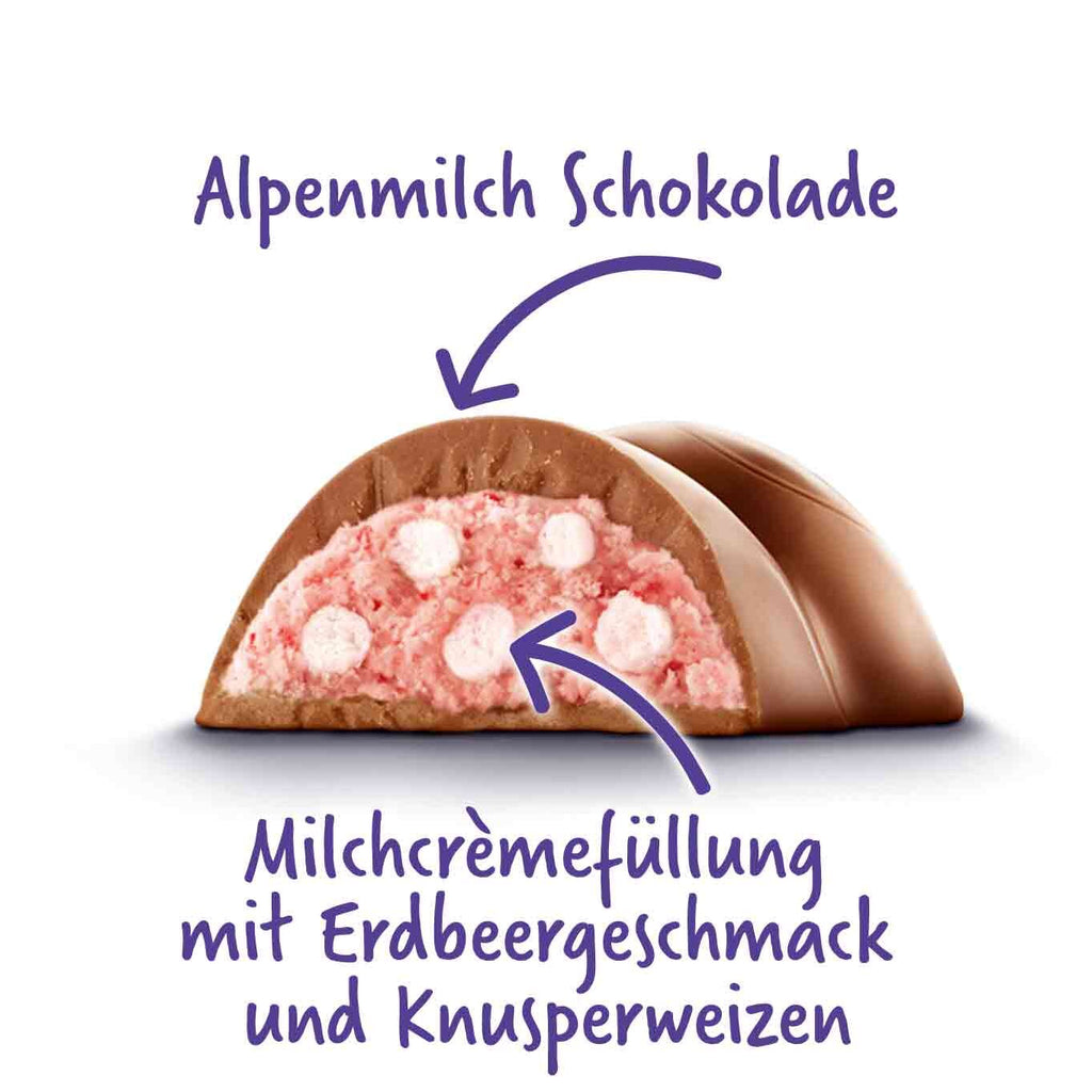 Fruchtig gut. Milka & Erdbeer ist der leckere Pausen-Snack mit Knuspereffekt. Denn wenn zarte Milchcreme sich mit fruchtigem Erdbeer-Geschmack verbindet und sich um krossen Knusperweizen schmiegt, lässt der Genuss nicht lange auf sich warten. Abgerundet von zartschmelzender Alpenmilch-Schokolade entsteht so eine Zwischenmahlzeit, die dem kleinen Hunger im Nu einen Riegel vorschiebt.