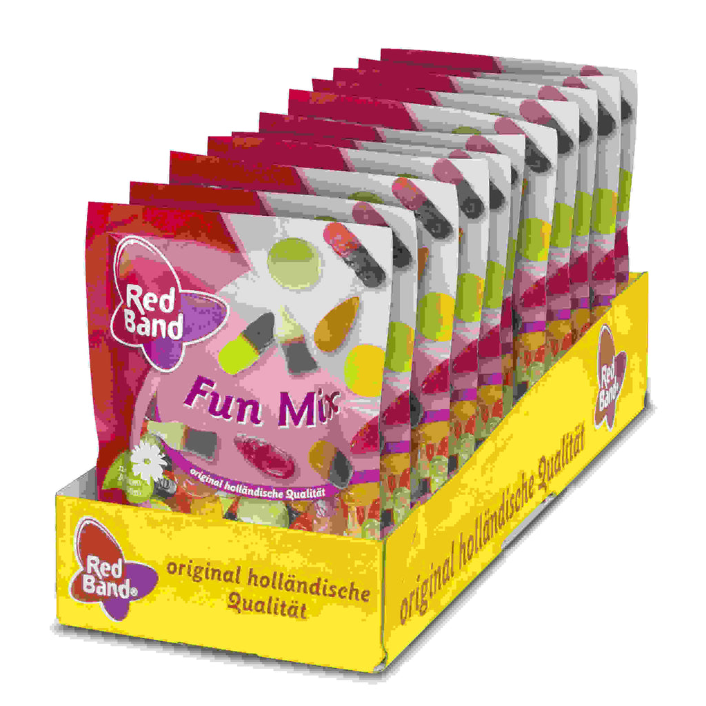 Vielfach genießen. Bei Red Band Fun Mix ist der Name Programm. Diese bunte Mischung sorgt für genügend Abwechslung und Naschspaß. Der bunte Inhalt des praktischen Stehbeutels bietet Fruchtgummi-Genuss mit dere richtigen Portion Lakritz. Ob Fruchtgummi-Schuhe, Cola-Fläschchen, Taler oder Briketts: Hier kommt jeder auf den Geschmack.